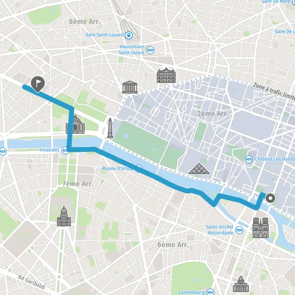 | Distance en voiture | 4,6 km à 4,7 km |