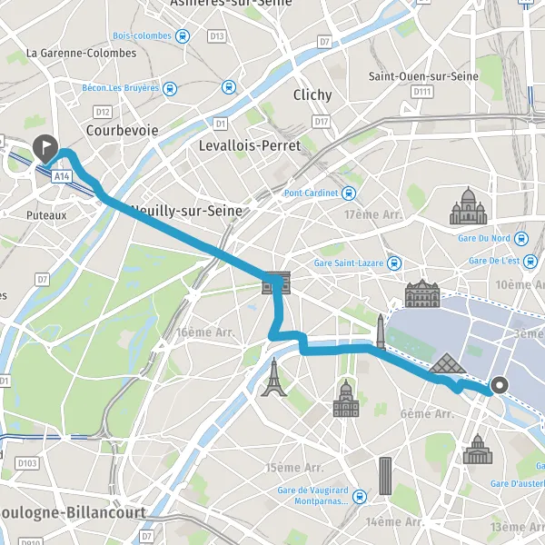 | Distance en voiture | 11,1 km à 13,2 km |