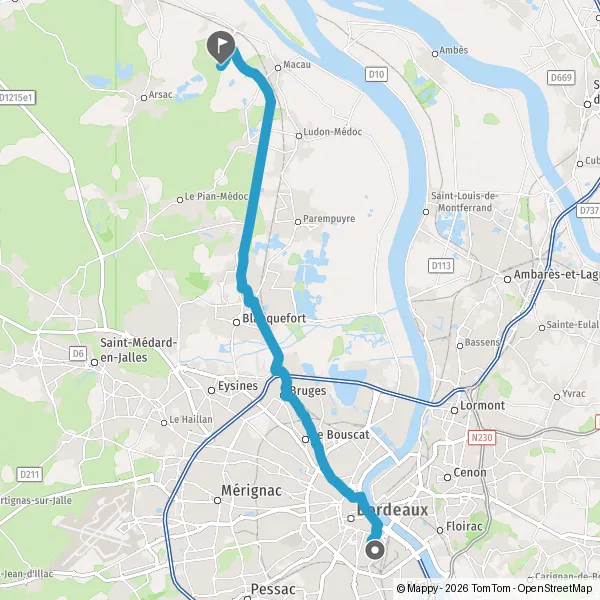 Au rond-point, prendre la 2ème sortie sur D2 (Route de Pauillac) et continuer sur 230 mètres