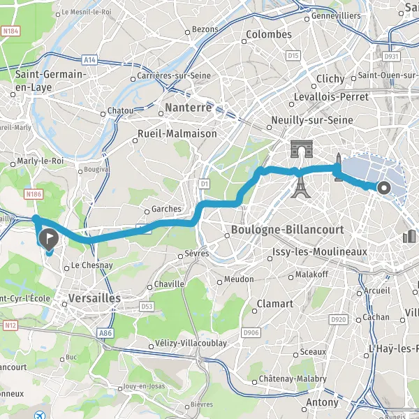 Au rond-point, prendre la 3ème sortie sur Rue de Versailles et continuer sur 450 mètres