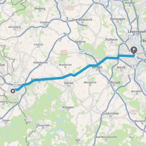 Prendre à droite et rejoindre B55 (Aachener Straße). Continuer sur 750 mètres