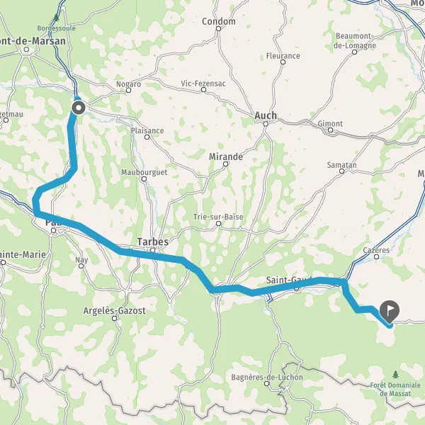 Prendre à droite et rejoindre A64 E80. Continuer sur 127 kilomètres