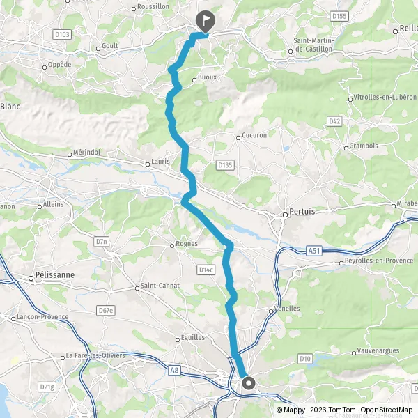 Au rond-point, prendre la 1ère sortie sur D943 (Route de Lourmarin) et continuer sur 3,1 kilomètres