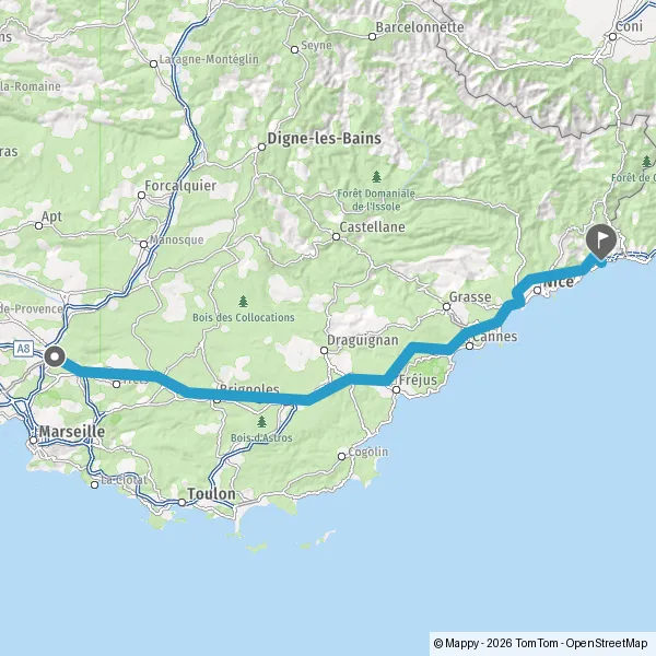 A8GapAvignonMarseilleFréjusSaint-RaphaëlAubagneToulon