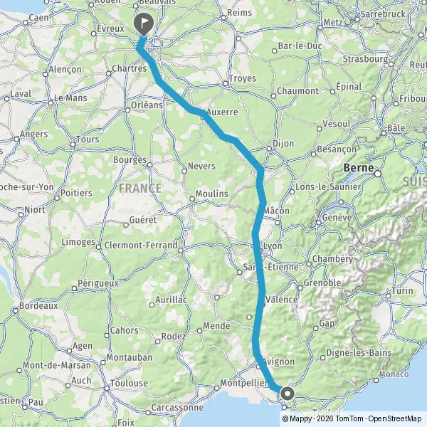 Prendre à droite et rejoindre A6. Continuer sur 294 kilomètres