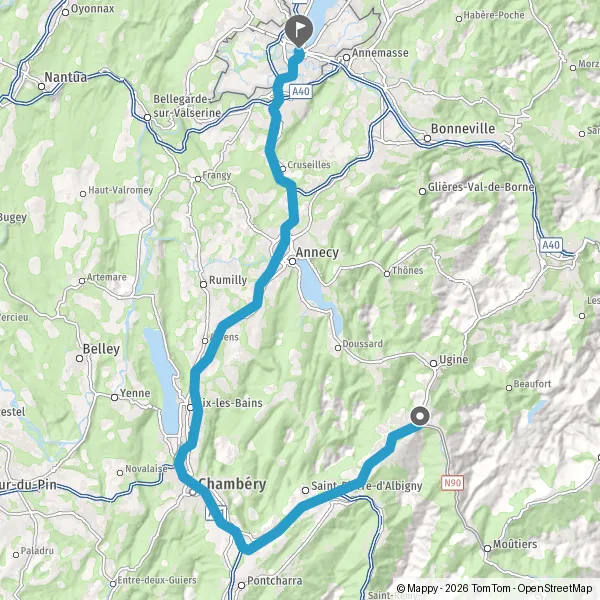 Prendre un ticket (Péage Chambery Nord) Payer 15,20 € (Péage St Martin Bellevue A41) Liane-Tranchée Couverte du Noiret Liane-Tunnel du Mont Sion 57 km