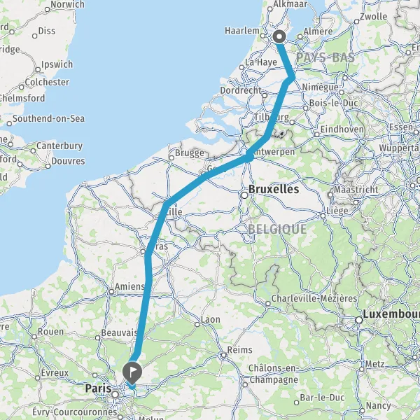 Continuer E17 (Autoroute du Nord) sur 168 kilomètres