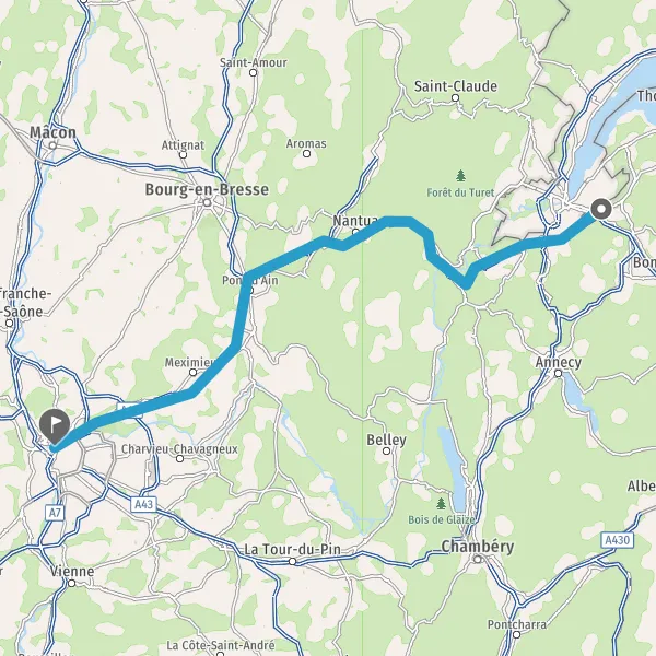Avec le mode voiture, vous pouvez configurer vos options (type de véhicule, autoroute ou non, péage ou non, distance la plus courte), tout en ayant accès aux infos de circulation grâce à notre service d'info-trafic en temps réel. Ainsi faites des économies sur le coût ou la durée de votre voyage, en trouvant le trajet Annemasse Lyon adapté à vos besoins.