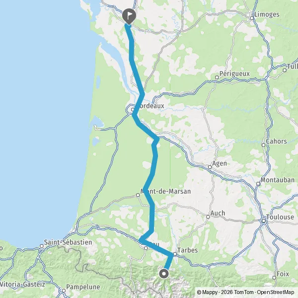 Prendre à droite et rejoindre A65. Continuer sur 150 kilomètres