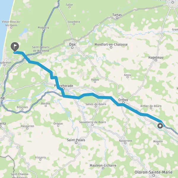 Prendre à gauche et rejoindre A64. Continuer sur 50 kilomètres