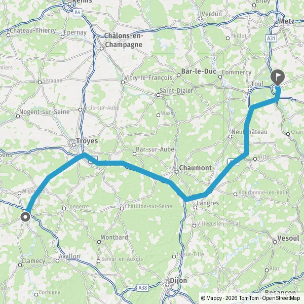 Prendre à droite et rejoindre A31. Continuer sur 101 kilomètres