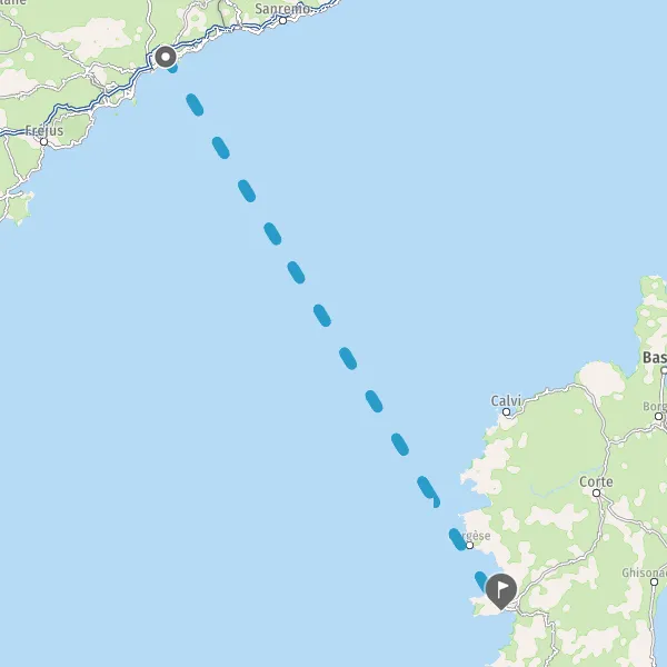 Itinéraire en avion de Nice 06000-06300 à Ajaccio 20000-20167