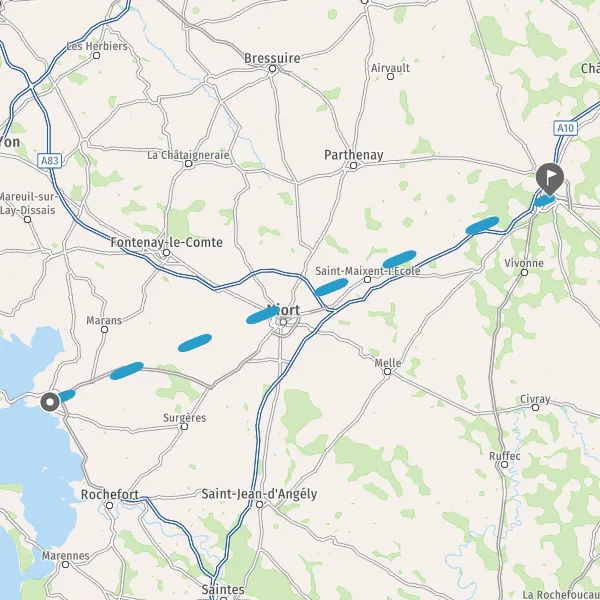 Venir à Poitiers. En voiture : accès direct par l’autoroute A10, Paris est à 330 km, Bordeaux à 220 km, La Rochelle à 130 km, Tours à 100 km. La Nationale N10 permet également de relier les grandes métropoles nationales. En bus : de nombreuses compagnies de car proposent des billets depuis la gare routière de Poitiers pour se déplacer en France et en Europe. Le service « Lignes en Vienne » relient Poitiers aux sites touristiques de la Vienne comme la Vallée des Singes, la Planète des Crocodiles, le Futuroscope, la cité Médiévale de Chauvigny ou le Parc de Saint Cyr. En train : Poitiers est desservie par le TGV Atlantique, avec une gare en centre-ville et une autre au Parc du Futuroscope. A présent, une ligne TER relie Poitiers au Parc du Futuroscope en moins de 10 min. En avion : depuis l’aéroport de Poitiers-Biard, des liaisons régulières sont assurées vers ou en provenance des destinations nationales et européennes : Londres, Ajaccio, Manchester, Lyon, Marseille, Milan, Nice, Venise. Un service de location de voitures et de taxis est disponible dans le hall de l’aérogare. Se déplacer à Poitiers : à pied, à vélo, en bus (24 lignes et 3 navettes), en covoiturage, en autopartage avec Citiz, en taxi ou en voiture. Pour stationner, 8 parkings sont à quelques minutes à pied du cœur de ville de Poitiers.