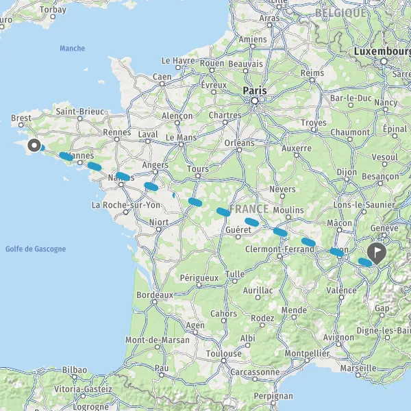 Venir à Chambéry. En voiture : Chambéry est desservie par les autoroutes A43 depuis Lyon ou l’Italie, A41 depuis Genève ou Grenoble, A6 depuis Paris et A7 depuis Marseille. En train : liaisons quotidiennes avec Paris par TGV (3h). La future liaison TGV Lyon-Turin permettra de mettre Chambéry à moins de 3 h de Milan et à 2h30 de Paris. De nombreux trains régionaux TER Auvergne-Rhône-Alpes relient Chambéry à Annecy, Lyon, Grenoble, Bourg-Saint-Maurice, Modane. En autocar : Belle Savoie Express est le réseau de transport interurbain en Savoie, une dizaine de lignes relient Chambéry à d’autres villes du département. Chambéry est également connectée aux départements voisins grâce à quelques lignes des réseaux Transisère et Car Ain. Plusieurs compagnies de bus desservent également la gare routière de Chambéry depuis de nombreuses villes de France et d’Europe: Flixbus et BlaBlaBus. En avion : l’Aéroport de Chambéry Savoie Mont Blanc est situé à une dizaine de km au nord du centre-ville. Il est desservi de décembre à avril par les Compagnies Flybe, Bristish Airways, Transavia, SAS et Charter Flights qui proposent des vols en provenance et à destination des Pays Bas, du Royaume-Uni et de la Suède. Se déplacer à Chambéry : plusieurs moyens de transport sont à disposition. Transports en commun: le réseau de bus STAC comprend 4 lignes chronos (1 bus toutes les 10mn), 15 lignes régulières et 9 lignes de transport à la demande. Voiture (près de 6 000 places payantes pour stationner), covoiturage et autopartage Citiz. Vous pouvez aussi vous déplacer à vélo. La Vélostation vous propose un service de Vélobulles, des triporteurs électriques qui vous prennent et vous déposent où vous le voulez sur un circuit prédéfini de 3km. Le Grand Chambéry est parcouru par près de 80km d’aménagements cyclables, dont 4 voies vertes totalement dédiées aux modes de déplacements doux (vélos, piétons, rollers…).