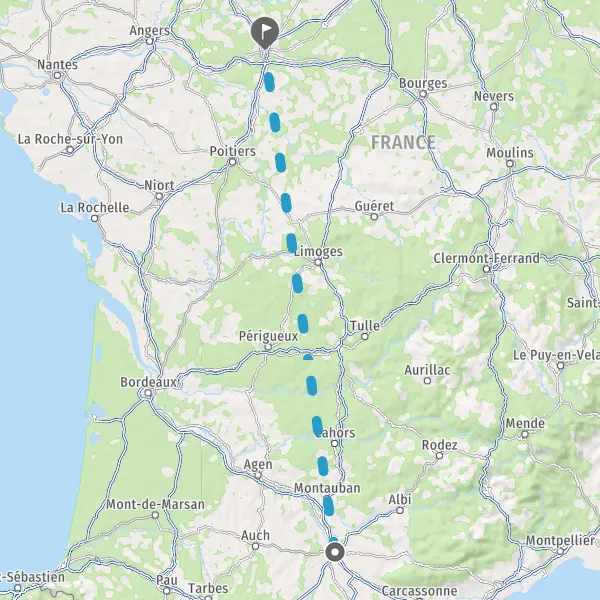 Venir à Tours. En voiture : 3 autoroutes desservent la Touraine : l’A10 (entre Paris et Bordeaux), l’A28 (entre Rouen et Tours) et l’A85 (entre Nantes et Bourges). Voici quelques indications de distances pour rallier Tours : Nantes (222 km), Paris (238 km), Rennes (242 km), Rouen (274 km), Bordeaux (348 km), Dijon (419 km), Lille (460 km), Lyon (463 km), Toulouse (525 km), Montpellier (664 km), Marseille (798 km), Nice (955 km). En autocar : la ville de Tours est desservie par autocar via les compagnies BlaBlaCar et ou Flixbus. En train : comptez 1h de TGV pour faire le trajet entre la gare de Paris Montparnasse et la gare de Tours / Saint-Pierre-des-Corps. D’autres liaisons directes sont proposées avec l’Ile-de-France : Massy (aéroport d’Orly), Marne-la-Vallée (Disneyland) et l’aéroport Roissy-Charles de Gaulle.Se déplacer à Tours : en vélo avec Velociti (service de location de vélo longue durée) ou avec Indigo Weel (vélos en libre-service), en transports en commun (la ville de Tours est desservie par le service de tram et bus de l'agglomération ""Fil bleu"" et le réseau départemental ""Fil vert""), en covoiturage avec covoiturons-en-touraine.com , en autopartage avec Citiz Tours (service de location de voiture en libre-service de courte durée), en taxi ou à pied.