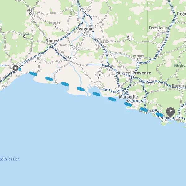Venir à Toulon. Par la route : en arrivant par l'ouest: par l’autoroute A50 en provenance de Marseille, Aix en Provence, Lyon ou Paris, par la route départementale D 559 en provenance de la Seyne sur Mer, par la route départementale D N8 en provenance d’Ollioules. En arrivant par l'est: par l’autoroute A50 en provenance de Nice ou Hyères, par les routes départementales D 559 ou D 42 (route du littoral) en provenance du Pradet, Carqueiranne ou Giens. En autocar: avec les bus du réseau Mistral. En bateau : la compagnie de navigation maritime privée ""Corsica Ferries"" assure des liaisons entre Toulon et les ports d'Ajaccio, de Bastia et de l'Île Rousse. En train : la gare est située au centre de Toulon et à proximité de la gare routière. En avion : Toulon est desservi par l'Aéroport International Toulon-Hyères. Il se trouve à environ 20 minutes du centre de Toulon.Se déplacer à Toulon : en navettes maritimes, en bus (réseau Mistral), à vélo (voies vertes, bandes et pistes cyclables), à pied, en voiture, en covoiturage (2 aires de covoiturage) ou en taxi.