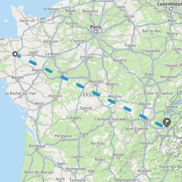 Venir à Chambéry. En voiture : Chambéry est desservie par les autoroutes A43 depuis Lyon ou l’Italie, A41 depuis Genève ou Grenoble, A6 depuis Paris et A7 depuis Marseille. En train : liaisons quotidiennes avec Paris par TGV (3h). La future liaison TGV Lyon-Turin permettra de mettre Chambéry à moins de 3 h de Milan et à 2h30 de Paris. De nombreux trains régionaux TER Auvergne-Rhône-Alpes relient Chambéry à Annecy, Lyon, Grenoble, Bourg-Saint-Maurice, Modane. En autocar : Belle Savoie Express est le réseau de transport interurbain en Savoie, une dizaine de lignes relient Chambéry à d’autres villes du département. Chambéry est également connectée aux départements voisins grâce à quelques lignes des réseaux Transisère et Car Ain. Plusieurs compagnies de bus desservent également la gare routière de Chambéry depuis de nombreuses villes de France et d’Europe: Flixbus et BlaBlaBus. En avion : l’Aéroport de Chambéry Savoie Mont Blanc est situé à une dizaine de km au nord du centre-ville. Il est desservi de décembre à avril par les Compagnies Flybe, Bristish Airways, Transavia, SAS et Charter Flights qui proposent des vols en provenance et à destination des Pays Bas, du Royaume-Uni et de la Suède. Se déplacer à Chambéry : plusieurs moyens de transport sont à disposition. Transports en commun: le réseau de bus STAC comprend 4 lignes chronos (1 bus toutes les 10mn), 15 lignes régulières et 9 lignes de transport à la demande. Voiture (près de 6 000 places payantes pour stationner), covoiturage et autopartage Citiz. Vous pouvez aussi vous déplacer à vélo. La Vélostation vous propose un service de Vélobulles, des triporteurs électriques qui vous prennent et vous déposent où vous le voulez sur un circuit prédéfini de 3km. Le Grand Chambéry est parcouru par près de 80km d’aménagements cyclables, dont 4 voies vertes totalement dédiées aux modes de déplacements doux (vélos, piétons, rollers…).
