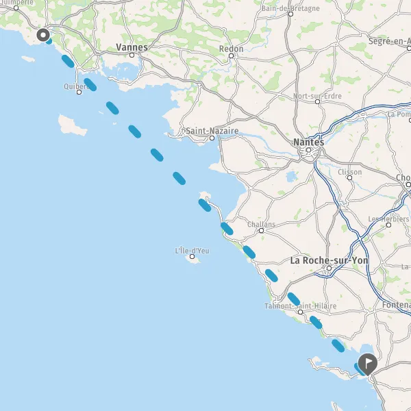 Venir à La Rochelle. Par la route : Paris : 467 km, Lyon : 650 km, Marseille : 825 km, Nantes : 146 kmBordeaux : 180 km, Toulouse : 400 kmset Strasbourg : 950 km. Par le train : Paris-La Rochelle : 3h en TGV et Bordeaux-La Rochelle / Nantes-La Rochelle : 2h en train Intercités.Se déplacer à La Rochelle : le bus de mer (une ligne régulière entre le Vieux Port et les Minimes), le passeur (liaison entre la médiathèque et le Vieux Port), location de vélos, location de voitures électriques (Yélomobile), en bus (réseau de 25 lignes de bus desservant la ville et ses alentours proches), taxis, VTC, liaisons maritimes (Bac Fouras / Aix, liaison maritime La Rochelle - Boyardville).