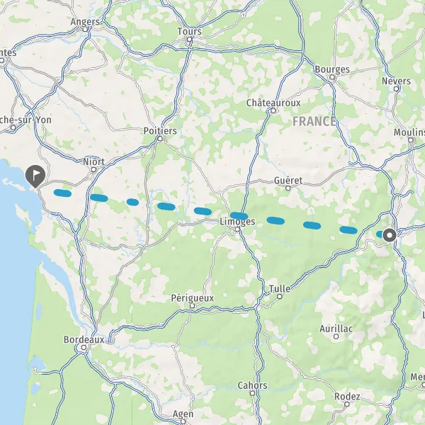 Venir à La Rochelle. Par la route : Paris : 467 km, Lyon : 650 km, Marseille : 825 km, Nantes : 146 kmBordeaux : 180 km, Toulouse : 400 kmset Strasbourg : 950 km. Par le train : Paris-La Rochelle : 3h en TGV et Bordeaux-La Rochelle / Nantes-La Rochelle : 2h en train Intercités.Se déplacer à La Rochelle : le bus de mer (une ligne régulière entre le Vieux Port et les Minimes), le passeur (liaison entre la médiathèque et le Vieux Port), location de vélos, location de voitures électriques (Yélomobile), en bus (réseau de 25 lignes de bus desservant la ville et ses alentours proches), taxis, VTC, liaisons maritimes (Bac Fouras / Aix, liaison maritime La Rochelle - Boyardville).