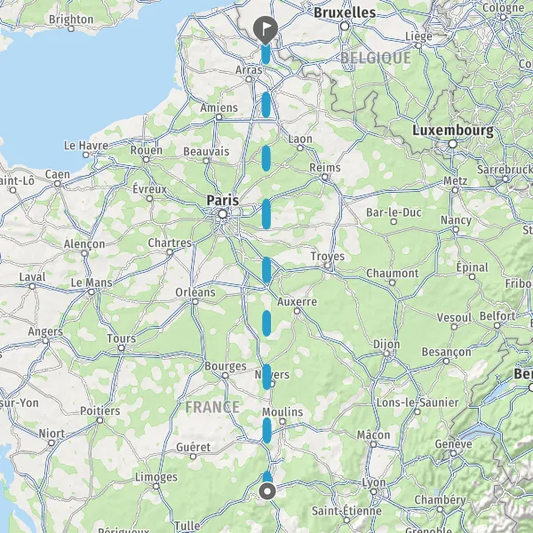 Venir à Lille. Par la route : Lille est située au croisement de cinq axes autoroutiers : A1 : Lille – Arras – Paris, A22 : Lille – Anvers, A23 : Lille – Valenciennes, A25 : Lille – Dunkerque – Calais et A27 : Lille – Tournai – Bruxelles / Liège. Par le train : Lille possède deux gares situées en centre ville et desservies par le métro et le tramway. La Gare de Lille Flandres est dédiée au trafic régional, aux InterCity pour la Belgique, aux TGV vers Paris et quelques villes de province. La Gare de Lille Europe est dédiée aux TGV avec des liaisons nationales et aux liaisons internationales vers la Belgique (Bruxelles) et vers l’Angleterre (Londres). Par le bus : plusieurs sociétés proposent des prix très avantageux : FlixBus et BlaBlaBus. Par les airs : l’Aéroport International de Lille-Lesquin se trouve à 10 km du centre de Lille. Une navette assure la liaison entre l’aéroport et le centre ville de Lille (arrêt devant le centre commercial Euralille : « Liaison Aéroport »). Se déplacer à Lille. Lille bénéficie d'un réseau étoffé de solutions de transport : transports collectifs avec le réseau Transpole (métro lignes 1 et 2, tramway R et T, 88 lignes de bus, train), vélo libre service avec Le V’Lille, taxi, segway, taxi-vélo avec Happy Moov et autopartage avec Citiz.