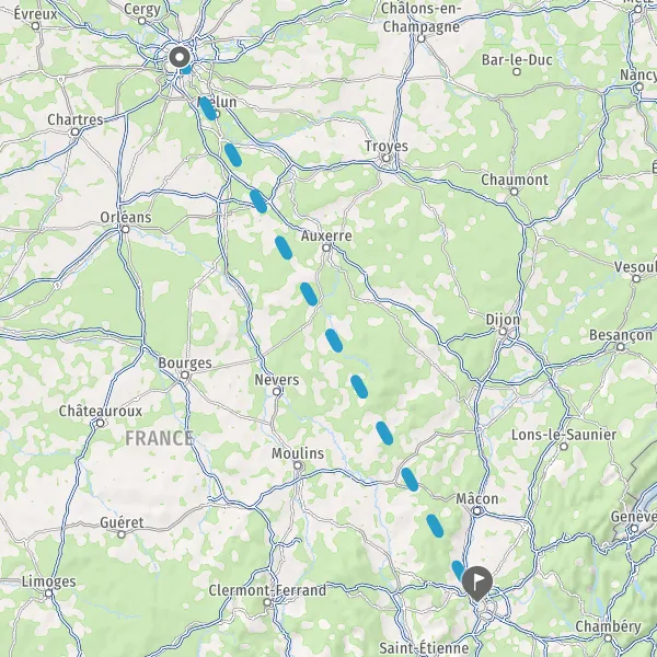 Venir à Lyon. En train : avec deux gares en centre ville, Part-Dieu et Perrache et une troisième dans l'aéroport Lyon Saint Exupéry, le TGV place aujourd'hui Lyon au centre de l'Europe. À 2h de Paris (1 train toutes les 30 minutes), 1h40 de Marseille (22 aller-retour quotidiens), 3h de Lille, 4h30 de Nantes, 5h de Londres (par l'Eurostar) et 5h10 de Barcelone, le TGV dessert aussi Chambéry, Annecy ou Bruxelles. En voiture : la ville est au centre d'un réseau routier dense de plus de 1000 km, qui la relie à toutes les grandes villes d'Auvergne-Rhône-Alpes, et aux grandes villes européennes. De Genève, vous êtes à Lyon en 1 h 40, de Clermont-Ferrand en 2 heures, des stations des Alpes en 2 h 15, de Marseille en 3 heures, de Paris en 4 h 20. En bus avec les compagnies de transports en commun de la région urbaine de Lyon, avec BlaBlaBus et Flixbus. En avion : il y a deux aéroports à Lyon : l'Aéroport international de Lyon Saint-Exupéry et l'aéroport d'affaires de Lyon-Bron. Le service de Tram Rhônexpress relie Lyon Part-Dieu à l'aéroport de Lyon Saint-Exupéry en moins de 30 minutes. Se déplacer à Lyon : transports urbains (metro, bus, tram, taxi et funiculaire), vélos en libre service avec Velo'v (4 000 vélos répartis sur 300 stations à Lyon et Villeurbanne), Vaporetto (navette fluviale sur la Saône), Cyclopolitain (vélo-taxi), Citiz (voiture électrique en libre-service).