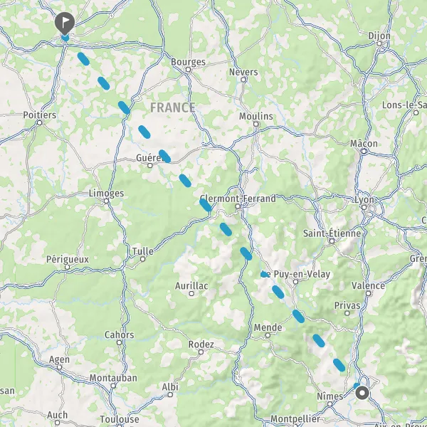 Venir à Tours. En voiture : 3 autoroutes desservent la Touraine : l’A10 (entre Paris et Bordeaux), l’A28 (entre Rouen et Tours) et l’A85 (entre Nantes et Bourges). Voici quelques indications de distances pour rallier Tours : Nantes (222 km), Paris (238 km), Rennes (242 km), Rouen (274 km), Bordeaux (348 km), Dijon (419 km), Lille (460 km), Lyon (463 km), Toulouse (525 km), Montpellier (664 km), Marseille (798 km), Nice (955 km). En autocar : la ville de Tours est desservie par autocar via les compagnies BlaBlaCar et ou Flixbus. En train : comptez 1h de TGV pour faire le trajet entre la gare de Paris Montparnasse et la gare de Tours / Saint-Pierre-des-Corps. D’autres liaisons directes sont proposées avec l’Ile-de-France : Massy (aéroport d’Orly), Marne-la-Vallée (Disneyland) et l’aéroport Roissy-Charles de Gaulle.Se déplacer à Tours : en vélo avec Velociti (service de location de vélo longue durée) ou avec Indigo Weel (vélos en libre-service), en transports en commun (la ville de Tours est desservie par le service de tram et bus de l'agglomération ""Fil bleu"" et le réseau départemental ""Fil vert""), en covoiturage avec covoiturons-en-touraine.com , en autopartage avec Citiz Tours (service de location de voiture en libre-service de courte durée), en taxi ou à pied.