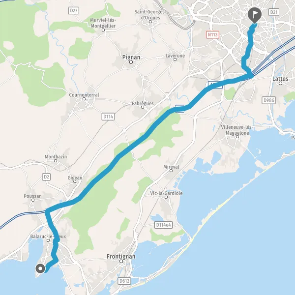 Au rond-point, prendre la 1ère sortie sur D2 D2e6 (Route de Sète) et continuer sur 500 mètres