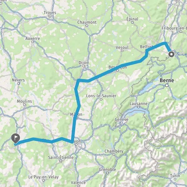 Prendre à gauche et rejoindre A36 E54 E60. Continuer sur 228 kilomètres