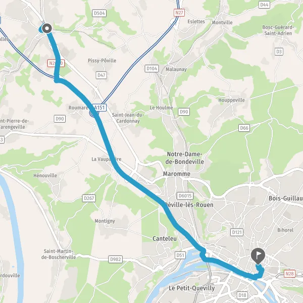 | Distance en voiture | 18,1 km à 19,1 km |