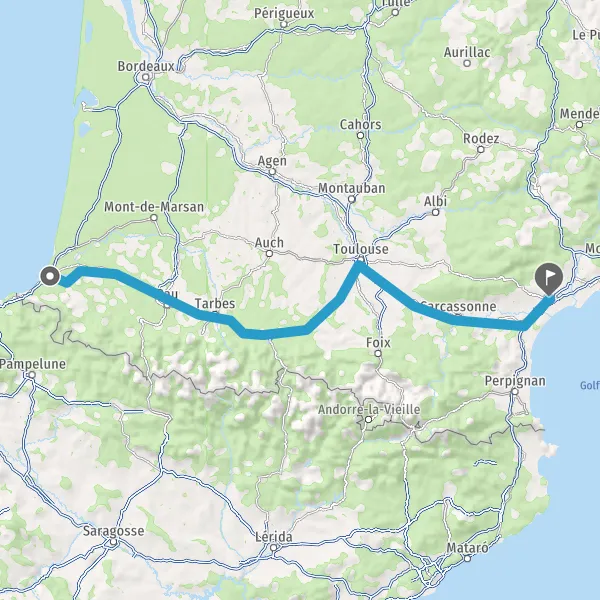 Prendre à droite et rejoindre A64. Continuer sur 287 kilomètres