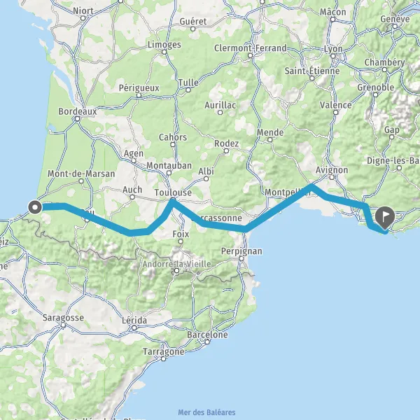 Prendre à droite et rejoindre A64. Continuer sur 287 kilomètres