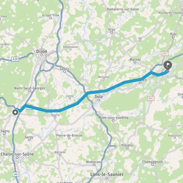 Prendre à droite et rejoindre D673 (Rue de Dole). Continuer sur 1,6 kilomètre