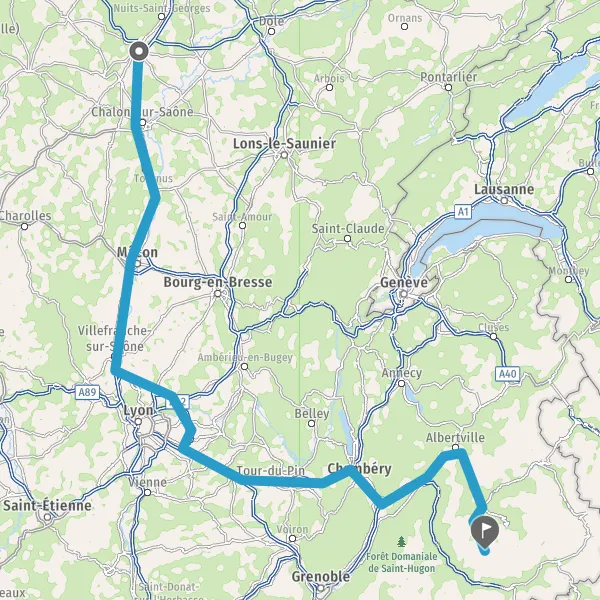 Prendre à droite et rejoindre A43. Continuer sur 19 kilomètres