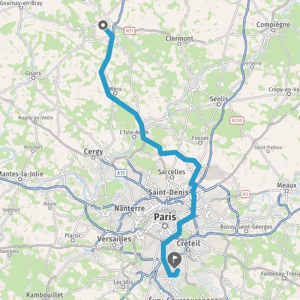 Prendre à droite et rejoindre La Francilienne. Continuer sur 350 mètres