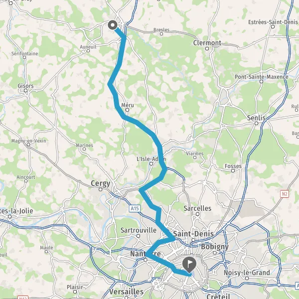 Prendre à droite et rejoindre La Francilienne. Continuer sur 350 mètres