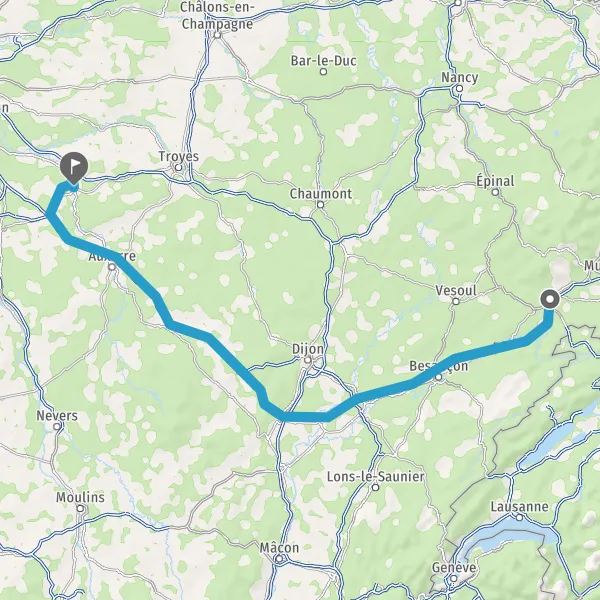 Prendre à droite et rejoindre A36. Continuer sur 183 kilomètres