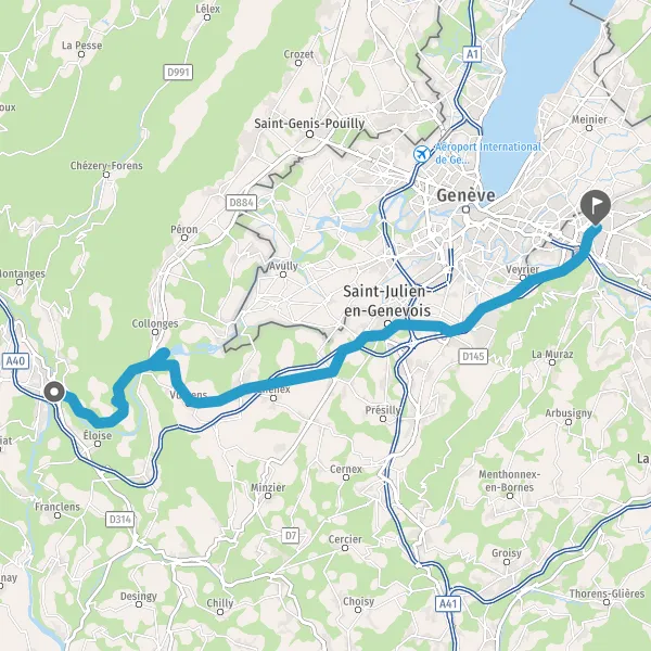 | Distance en voiture | 44,9 km à 46,1 km |