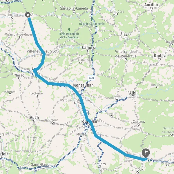 Prendre à gauche et rejoindre A61. Continuer sur 20 kilomètres