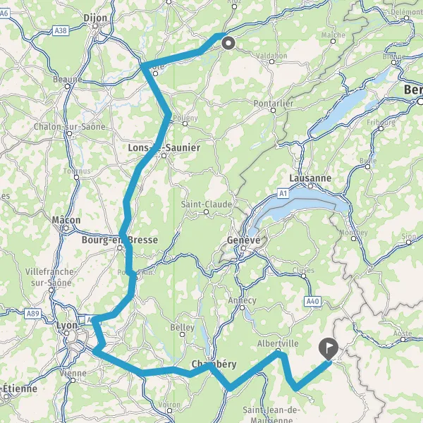 Prendre à droite et rejoindre A43. Continuer sur 19 kilomètres
