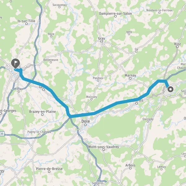 Prendre à droite et rejoindre N57 E23 (Rue de Vesoul). Continuer sur 1,7 kilomètre