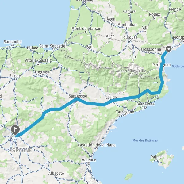 Prendre à droite et rejoindre A9 E15 E80. Continuer sur 113 kilomètres
