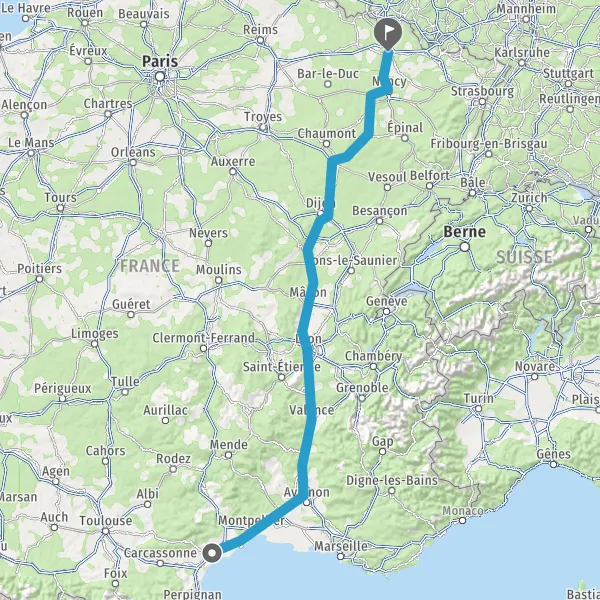 Prendre à droite et rejoindre A9. Continuer sur 159 kilomètres