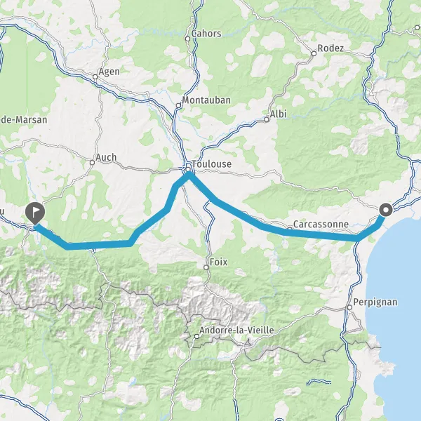 Prendre à droite et rejoindre A9 E15 E80. Continuer sur 27 kilomètres