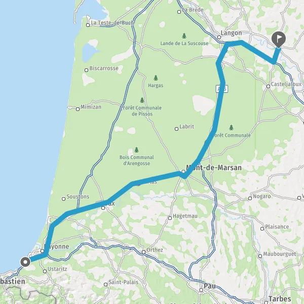 Prendre à droite et rejoindre D824 (Route de Bayonne). Continuer sur 39 kilomètres