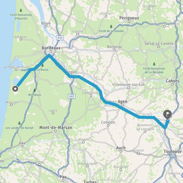 Tourner légèrement à droite sur D652 (Route de Bordeaux) et continuer sur 8,6 kilomètres