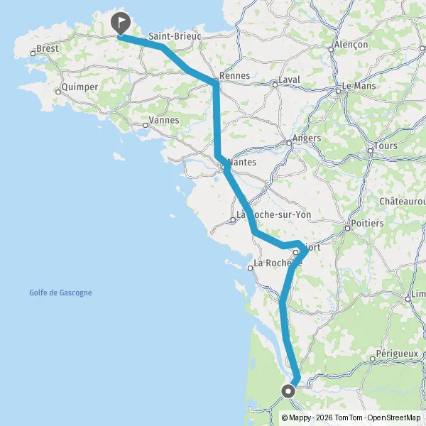 Prendre à droite et rejoindre A83. Continuer sur 150 kilomètres