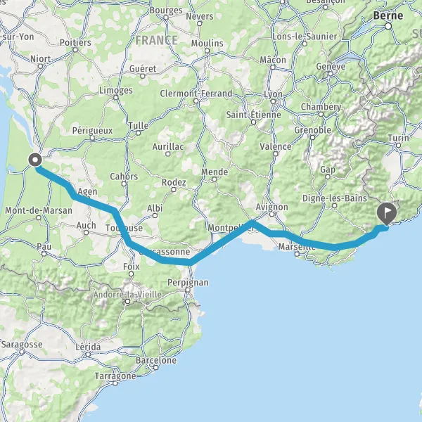 Prendre à gauche et rejoindre A62 E72. Continuer sur 224 kilomètres