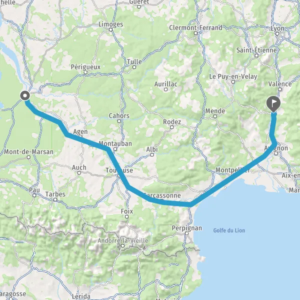 Prendre à gauche et rejoindre A62 E72. Continuer sur 224 kilomètres