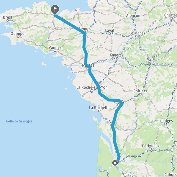 Trajet de Bordeaux (33000) à Saint-Brieuc (22000) en voiture