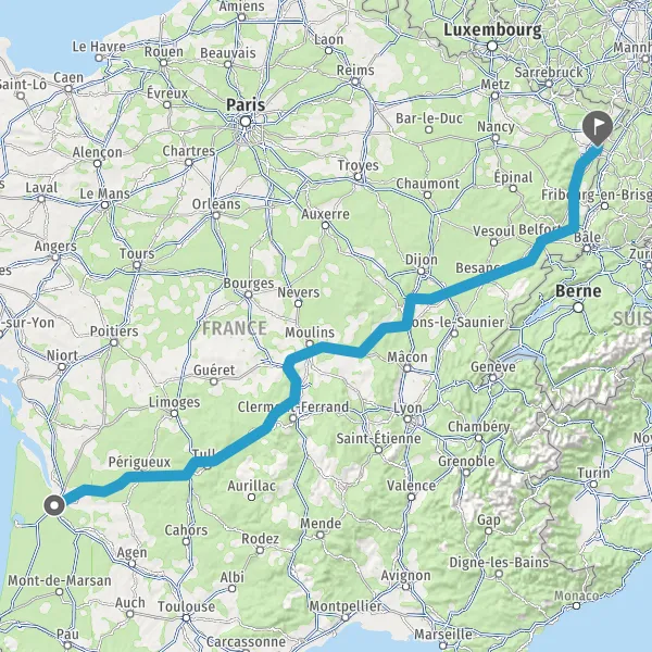Prendre à droite et rejoindre A36. Continuer sur 225 kilomètres